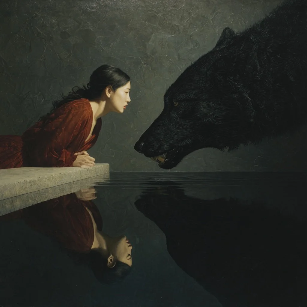 Meeting the Beast: Where shadows begin to emerge—often through mirrored encounters. What parts of yourself have you tried to exile in order to be loved? What shows up in the other that challenges your self-image?