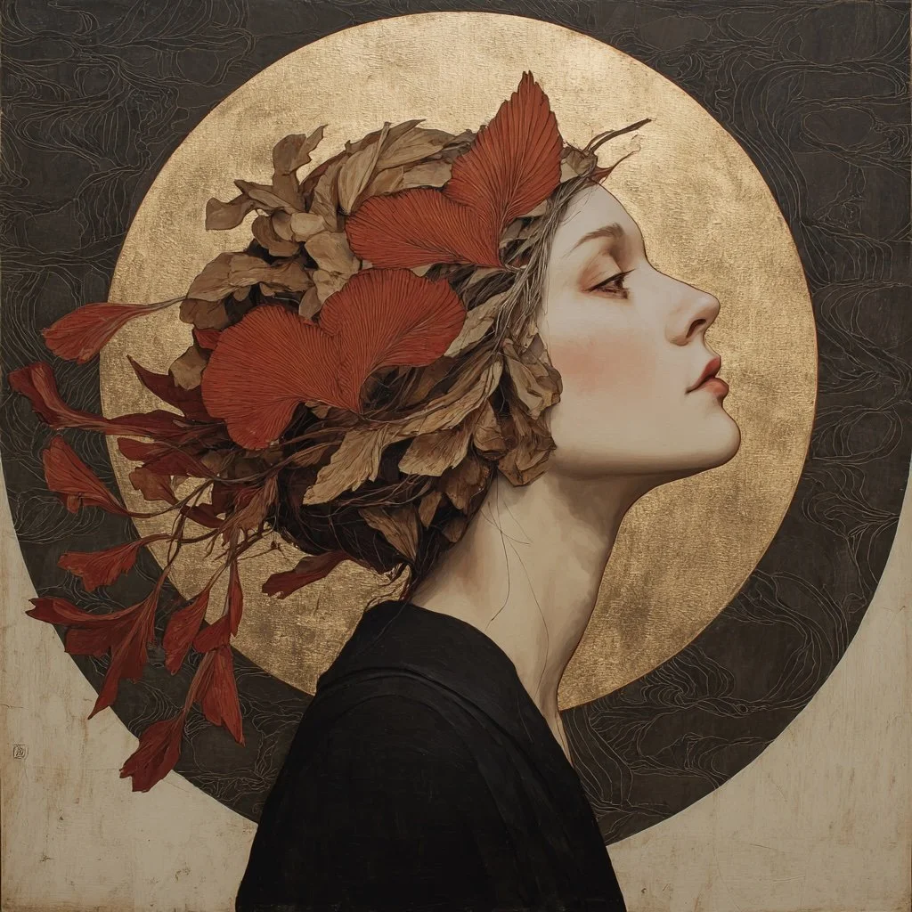 Venus, the Heroine, stands barefoot in the changing leaves, her gaze fierce and gentle all at once.