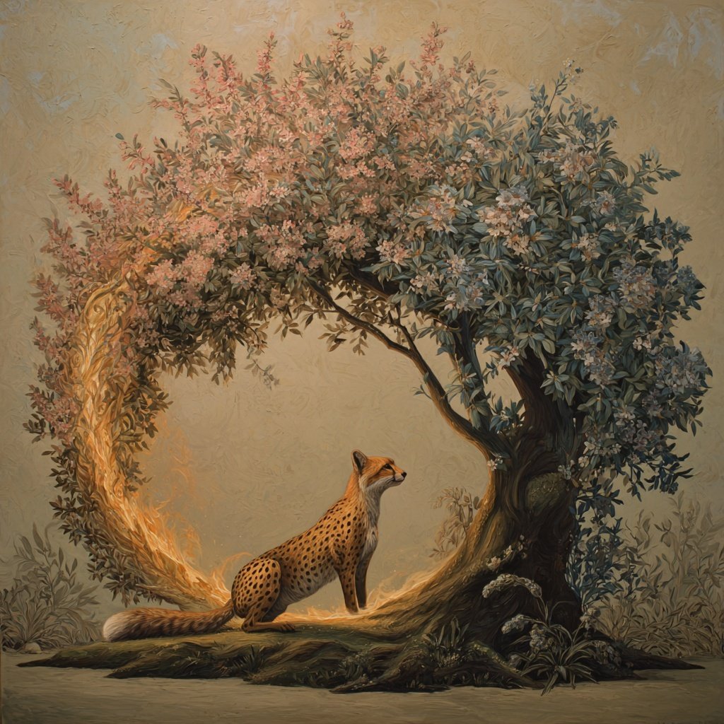 The 1 numerological year and the Fire Horse run underneath all of it like a current — restless, spirited, unwilling to accept the limitations of the past 19 years. This spring is not asking for small adjustments. It is asking for genuine courage: the Fox's courage to think differently, the Cheetah's courage to make something real, and the heart's courage to love what you are building enough to protect it.